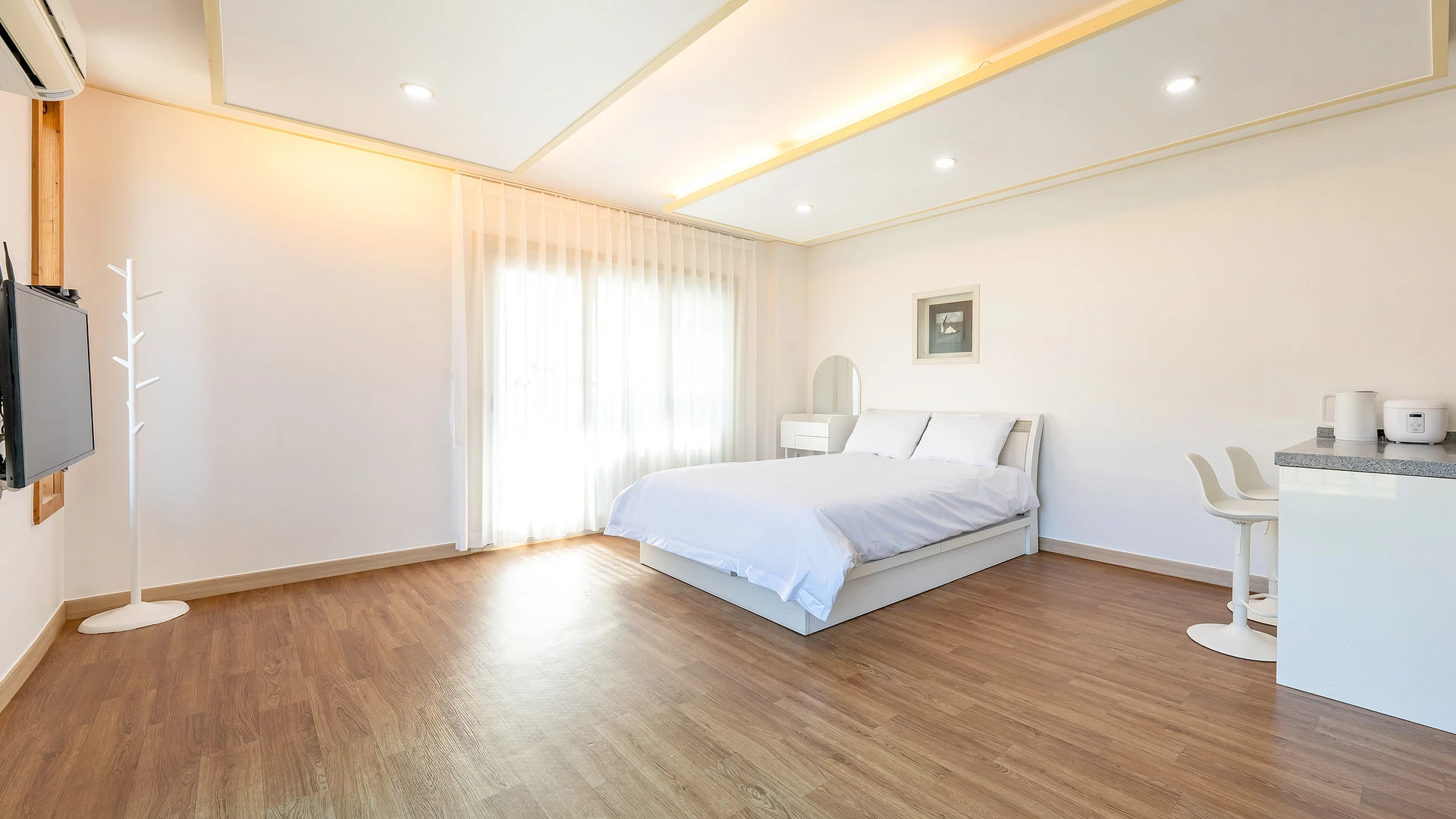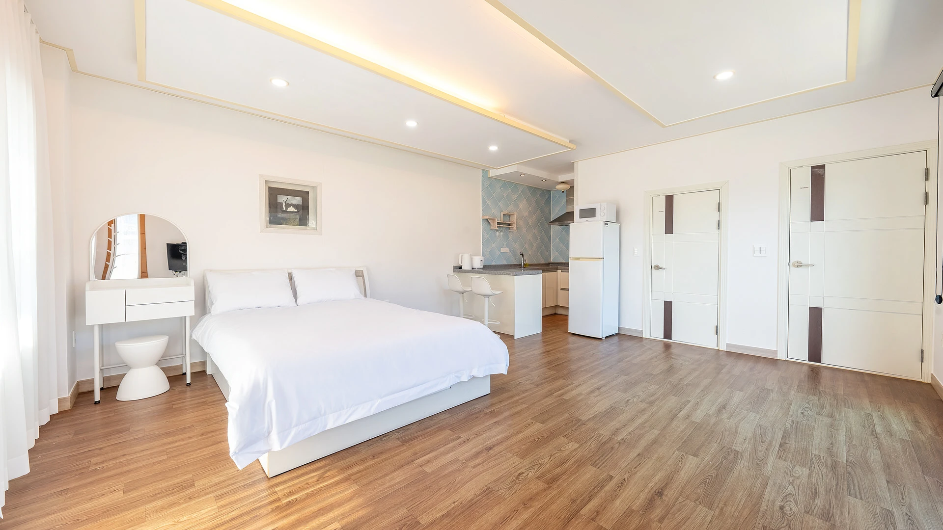 - 집기품목 : TV, 냉장고, 드라이기, 욕실용품, 린스, 무선인터넷, 비누, 샴푸, 에어컨, 와이파이, 인덕션, 전자레인지, 전기밥솥, 취사시설/도구, 침대방, 커피포트, 화장대