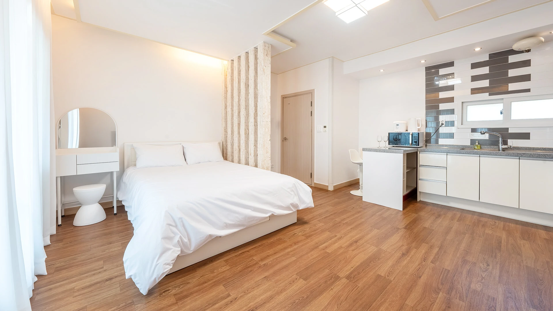 - 집기품목 : TV, 냉장고, 드라이기, 욕실용품, 린스, 무선인터넷, 비누, 샴푸, 에어컨, 와이파이, 인덕션, 전자레인지, 전기밥솥, 취사시설/도구, 침대방, 커피포트, 화장대